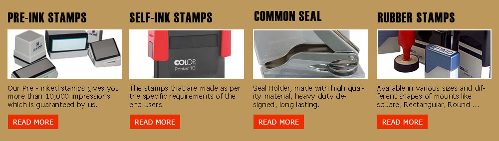 We Evershine Impressions - Rubber stamps makers in Chennai, offer the best office stamps for your business. We provide Rubber stamps, Pre Ink Stamps, Self Ink Stamps, Dater stamps, Common seal etc. for your business requirement. The brands we supply include Sun Stamper, Exmark Stamps, Dura Stamps, Shiny stamps and Colop stamps.